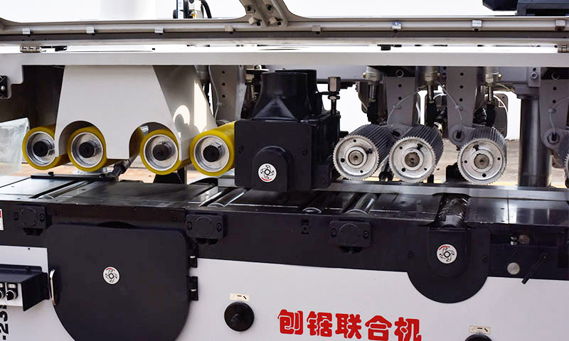 4. 送料輪式送料,比履帶送料經(jīng)濟安全、好控制保養(yǎng),壓料使用氣壓式,所以即使木料厚度變化大,壓料壓力亦固定,壓料之厚度范圍大,最大可達35 mm。